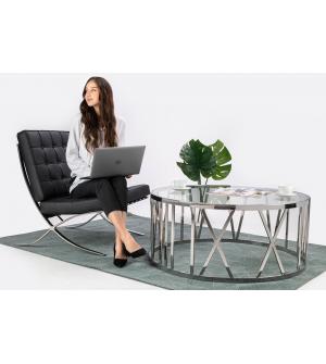 Fotel Barcelon Prestige Plus stanowi jednoosobową mini sofę, której szerokość 75 cm pozwala wygodnie się rozsiąść i wypocząć. Siedzisko jest na wysokości 46 cm i zostało wykonane z selekcjonowanej skóry włoskiej, dzięki czemu cechuje je wysoka trwałość i doskonały wygląd. Z kolei stelaż i nóżki fotela zrobione są ze stali nierdzewnej polerowanej, co...