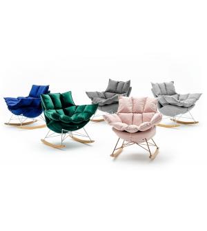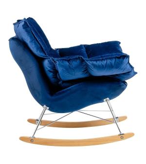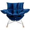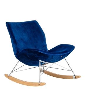 Fotel bujany SWING VELVET. Korpus tapicerowany welurem, wykonany jest z tworzywa sztucznego. Miękka poducha obszyta ciemnoniebieskim aksamitnym welurem. Poduchę można w łatwy sposób odpiąć od korpusu. Stelaż ze stali chromowanej. Płozy wykonane z drewna bukowego.Waga netto 1 szt.: 9 kg Waga opakowania: 14 kg Sposób wysyłki: Paczka Wymiary opakowania: 95...