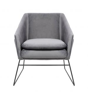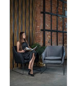 Fotel EMMA. Siedzisko oraz poduszka tapicerowane są aksamitnym welurem w ciemnoszarym kolorze. Metalowa podstawa lakierowana na kolor czarny nadaje Emmie oryginalnego charakteru.Możliwość personalizacji obicia, wyjątkowy design oraz solidne wykonanie sprawia, że fotel doskonale odnajdzie się w każdej aranżacji.Głębokość siedziska: 52 cm Wymiar...