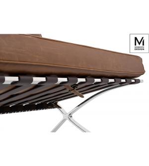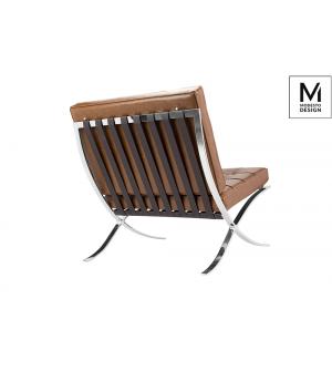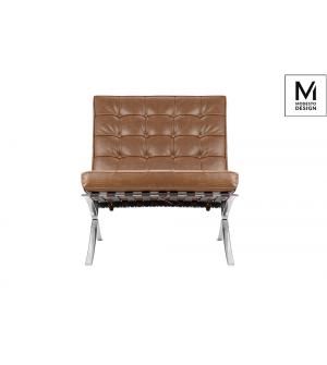Fotel Barcelon marki Modesto Design stanowi jednoosobową mini sofę, której szerokość pozwala wygodnie się rozsiąść i wypocząć. Siedzisko zostało wykonane w całości z ekoskóry w kolorze brązowym vintage. Z kolei stelaż i nóżki fotela zrobione są ze stali nierdzewnej polerowanej, co dodaje elegancji. Dodatkowo wewnątrz całego stelaża jest stalowy rdzeń...