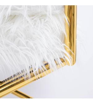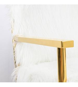 KARE fotel MR.FLUFFY biały / złoty. Nowoczesna, awangardowa propozycja od marki Kare Design. Pianka poliuretanowa pokryta miękką, przyjemną tkaniną wykonaną z poliestru w połączeniu ze stalową, chromowaną podstawą w kolorze złotym tworzy wyjątkowy pod względem wyglądu i komfortu fotel Mr. Fluffy. Puszysty futrzak doskonale odnajdzie się w stylu glamour....