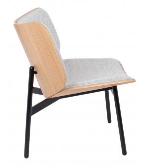 Fotel BENJAMIN. Designerska, lekka forma o ciekawym kształcie. Połączenie trzech materiałów — tkaniny, metalu oraz drewna sprawia, że Benjamin jest niezwykle funkcjonalny. Stonowane, uniwersalne kolory siedziska wraz z czarną podstawą i drewnianym akcentem poszerzają możliwości aranżacyjne.Szerokość oparcia: 68 cm Wysokość oparcia: 40 cm Szerokość...
