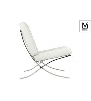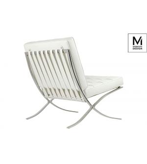 Fotel Barcelon marki Modesto Design stanowi jednoosobową mini sofę, której szerokość 75 cm pozwala wygodnie się rozsiąść i wypocząć. Siedzisko jest na wysokości 46 cm i zostało wykonane w całości z ekoskóry w kolorze białym. Z kolei stelaż i nóżki fotela zrobione są ze stali nierdzewnej polerowanej, co dodaje elegancji. Dodatkowo wewnątrz całego stelaża...