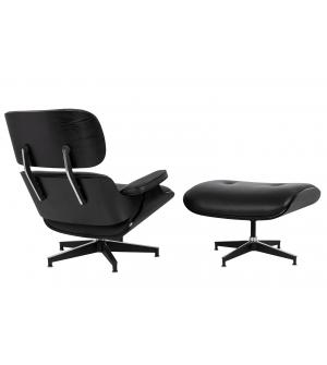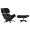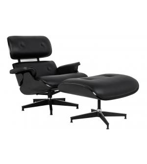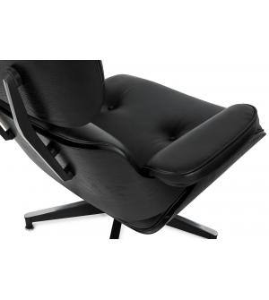Fotel LOUNGE HM PREMIUM SZEROKI z podnóżkiem z drewnem z czarnego jesionu. Cały fotel wraz z podnóżkiem tapicerowane są naturalną włoską skórą w kolorze czarnym. Zarówno korpus fotela jak i podnóżka został wykonany z giętej sklejki fornirowanej drewnem jesionowym. Podstawy oraz elementy metalowe wykonane zostały ze stali, malowanej proszkowo na kolor...