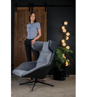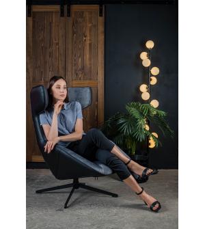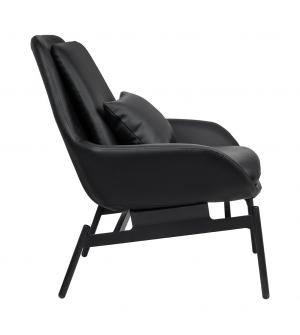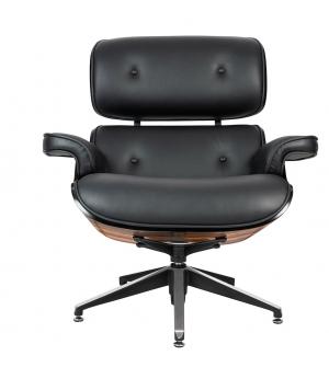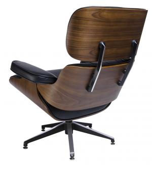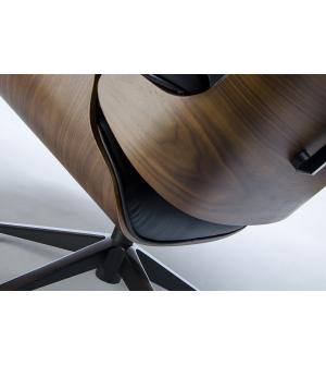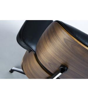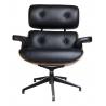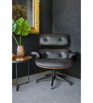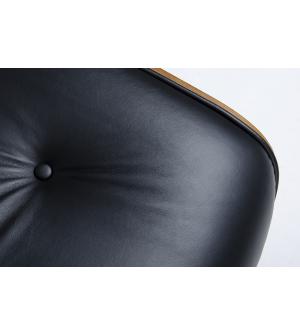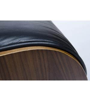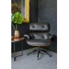 Fotel LOUNGE czarnym z orzechowym drewnem. Siedzisko, oparcie oraz podłokietniki tapicerowane są skórą naturalną w kolorze czarnym. Korpus fotela został wykonany z giętego na ciepło drewna w kolorze orzechowym. Podstawa oraz elementy metalowe wykonane zostały ze stali, malowanej proszkowo na kolor czarny matowy. Dla podkreślenia elegancji, podstawa oraz...