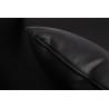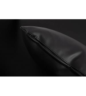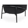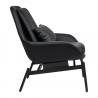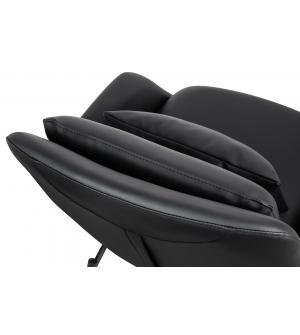 Fotel LAZY. Siedzisko oraz dekoracyjne poduszki w całości tapicerowane są czarną ekoskórą. Szeroka metalowa podstawa lakierowana na kolor czarny sprawia, że konstrukcja fotela jest niezwykle stabilna, co zapewnia wygodę i komfort. Głębokość siedziska możemy zmieniać w zależności od ilości wykorzystanych poduszek.Możliwość personalizacji obicia...