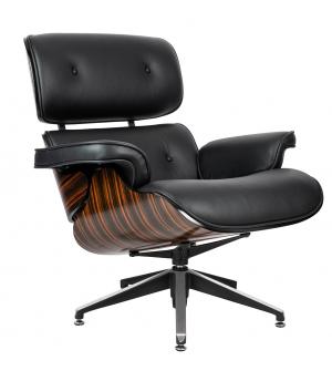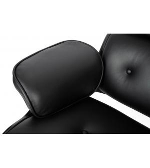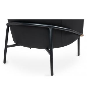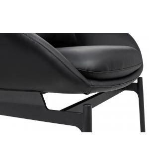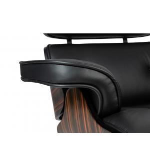 Fotel LOUNGE czarny. Siedzisko, oparcie oraz podłokietniki tapicerowane są skórą naturalną w kolorze czarnym. Korpus fotela został wykonany z giętej sklejki fornirowanej drewnem hebanowym. Podstawa oraz elementy metalowe wykonane ze stali malowanej proszkowo na kolor czarny matowy. Dla podkreślenia elegancji podstawa oraz łączenia oparcia są dodatkowo...