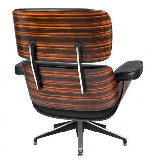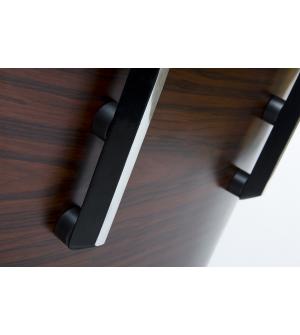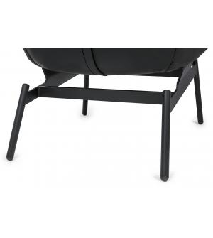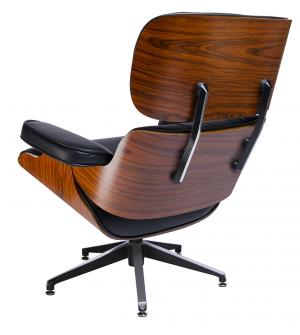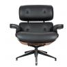 Fotel LOUNGE czarnym z różanym drewnem. Siedzisko, oparcie oraz podłokietniki tapicerowane są skórą naturalną w kolorze czarnym. Korpus fotela został wykonany z giętego na ciepło drewna w kolorze różanym. Podstawa oraz elementy metalowe wykonane zostały ze stali, malowanej proszkowo na kolor czarny matowy. Dla podkreślenia elegancji, podstawa oraz...