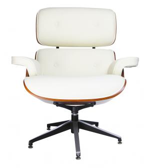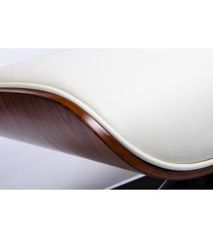 Fotel LOUNGE biały z podnóżkiem z jesionowego drewna. Cały fotel wraz z podnóżkiem tapicerowane są skórą naturalną w kolorze białym. Korpus fotela został wykonany z giętego na ciepło drewna jesionu. Podstawy oraz elementy metalowe wykonane zostały ze stali, malowanej proszkowo na kolor czarny matowy. Dla podkreślenia elegancji, obie podstawy oraz łączenia...