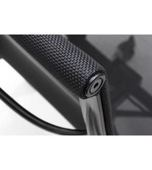 Fotel biurowy Body Prestige w kolorze czarnym. Minimalistyczna forma która wprowadzi elegancki akcent do twojego biura. Cała konstrukcja wykonana jest wytrzymałego aluminium w czarnym, satynowym kolorze. Siedzisko i oparcie tapicerowane są czarną tkaniną w drobną siateczkę. Chromowane kółeczka oraz przeszycia na skórze, podkreślają charakter fotela. Fotel...