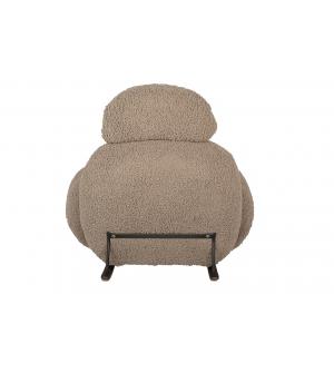 Fotel bujany PLUSH TEDDY ciemny beżowy. Niezwykle wygodny fotel tapicerowany miękką i przyjemną w dotyku tkaniną teddy wykonaną z poliestru (95%) oraz akrylu (5%). Kształtem nawiązuje do dużego pluszaka, dzięki czemu będzie głównym elementem dekoracyjnym każdej aranżacji. Dębowe płozy nawiązują do tradycji i potęgują komfort wypoczynku.Szerokość...