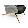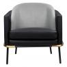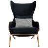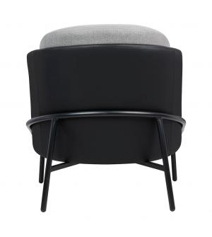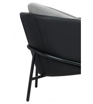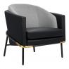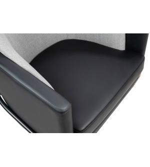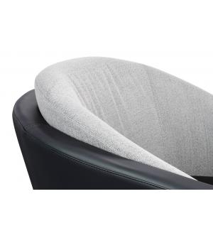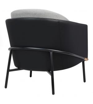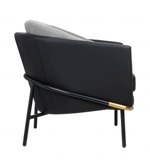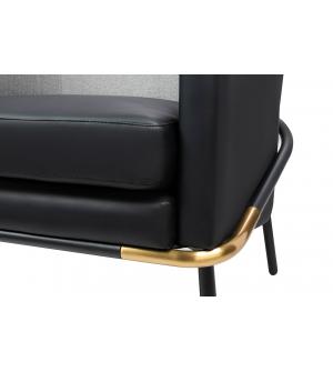 Fotel GUBI. Tył fotela wraz z podłokietnikami i siedziskiem tapicerowany jest ekoskórą w kolorze czarnym. Oparcie obszyte jest szarą tkaniną, które oprócz dekoracji poprawia komfort wypoczynku. Metalowa podstawa w kolorze czarnym została udekorowana złotymi wstawkami, co podkreśla nowoczesny charakter fotela.Możliwość personalizacji obicia, wyjątkowy...