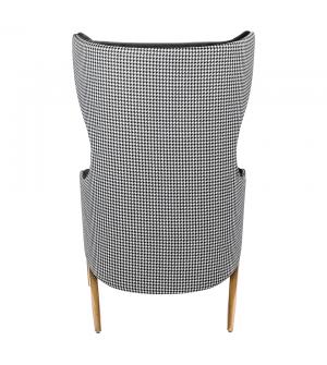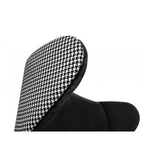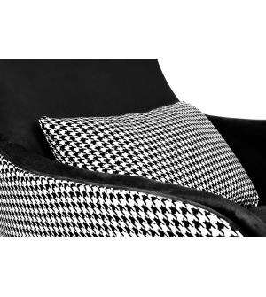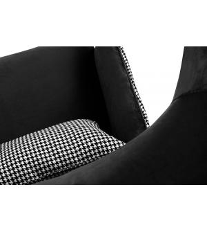 Fotel HAMPTON VELVET czarny / pepitka. Siedzisko tapicerowane jest aksamitnym, czarnym welurem, a tył fotela oraz poduszka zostały obszyte tkaniną w biało-czarną pepitkę. Metalowa podstawa o ciekawym kształcie w kolorze złotym podkreśla nowoczesny charakter fotela. Wyjątkowy design oraz solidne wykonanie sprawia, że Hampton doskonale odnajdzie się w...