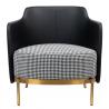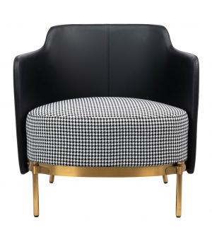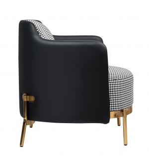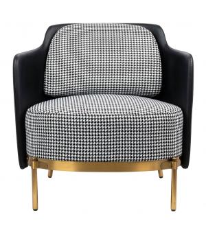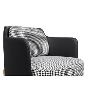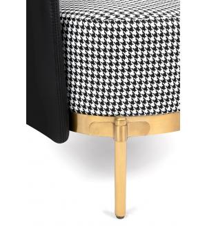 Fotel VENICE. Siedzisko oraz poduszka obszyte jest tkaniną w biało-czarną pepitkę. Tył fotela wraz z podłokietnikami tapicerowany jest ekoskórą w kolorze czarnym. Metalowa podstawa w złotym, satynowym kolorze podkreśla nowoczesny charakter fotela.Możliwość personalizacji obicia, wyjątkowy design oraz solidne wykonanie sprawia, że Venice doskonale...