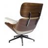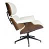 Fotel LOUNGE biały z orzechowym drewnem. Siedzisko, oparcie oraz podłokietniki tapicerowane są skórą naturalną w kolorze białym. Korpus fotela został wykonany z giętego na ciepło drewna w kolorze jasny orzech. Podstawa oraz elementy metalowe wykonane zostały ze stali, malowanej proszkowo na kolor czarny matowy. Dla podkreślenia elegancji, podstawa oraz...