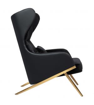 Fotel LOUNGE HM PREMIUM SZEROKI czarny z orzechowym drewnem. Cały fotel tapicerowany jest naturalną włoską skórą w kolorze czarnym. Korpus fotela jak i podnóżka został wykonany z giętego na ciepło drewna w kolorze orzechowym. Podstawy oraz elementy metalowe wykonane zostały ze stali, malowanej proszkowo na kolor czarny matowy. Dla podkreślenia elegancji,...
