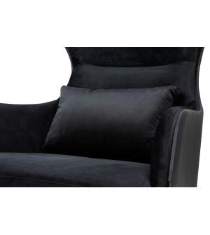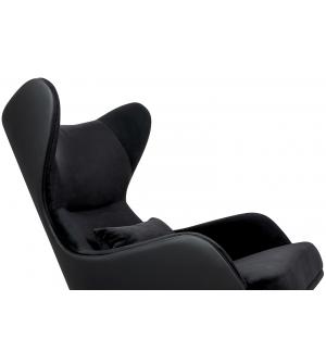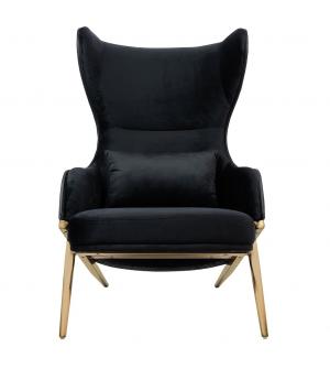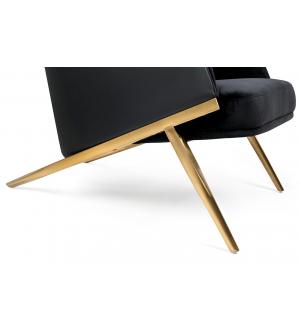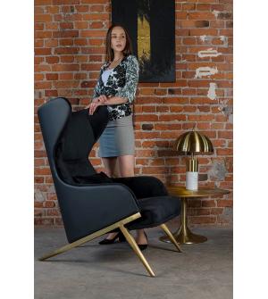 Fotel HAMPTON. Siedzisko oraz poduszka tapicerowane są aksamitnym welurem w kolorze czarnym. Tył fotela został obszyty czarną ekoskórą. Metalowa podstawa o ciekawym kształcie w kolorze złotym podkreśla nowoczesny charakter fotela.Możliwość personalizacji obicia, wyjątkowy design oraz solidne wykonanie sprawia, że Hampton doskonale odnajdzie się w każdej...