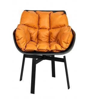 Krzesło obrotowe SHIBA brązowe / czarne. Nowoczesna forma harmonijnie łączy siedzisko z włókna szklanego wyłożone wygodną poduszką oraz stabilne, metalowe nóżki. Idealne rozwiązanie dla każdego miłośnika designu, który ceni wygodę i nowoczesny kształt. Eleganckie połączenie czarnego korpusu z koniakowym odcieniem poduszki tapicerowanej ekoskórą. Fotel...