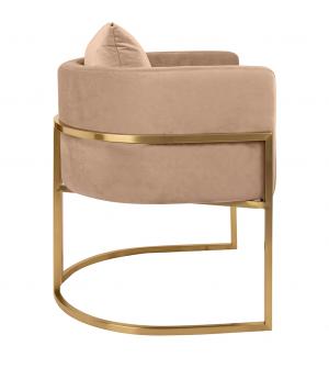 Fotel CHLOE. Siedzisko oraz poduszka tapicerowane są aksamitnym welurem w kolorze khaki. Metalowa podstawa w kolorze złotym podkreśla nowoczesny styl fotela. Możliwość personalizacji obicia oraz wyjątkowy design sprawia, że Chloe doskonale odnajdzie się w każdej aranżacji.Głębokość siedziska: 54 cm Wymiar poduszki: 40 cm x 40 cm x 15 cm Waga netto 1...