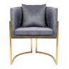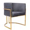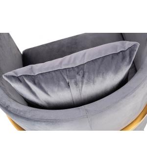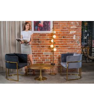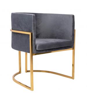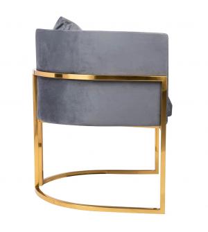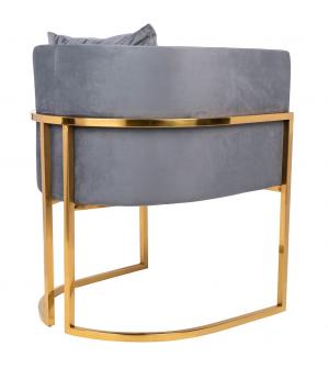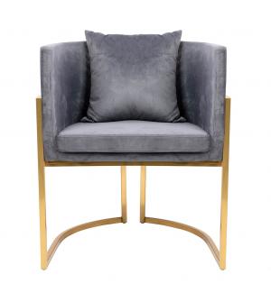 Fotel CHLOE. Siedzisko oraz poduszka tapicerowane są aksamitnym welurem w kolorze ciemnej szarości. Metalowa podstawa w kolorze złotym podkreśla nowoczesny styl fotela. Możliwość personalizacji obicia oraz wyjątkowy design sprawia, że Chloe doskonale odnajdzie się w każdej aranżacji.Głębokość siedziska: 54 cm Wymiar poduszki: 40 cm x 40 cm x 15 cm Waga...
