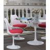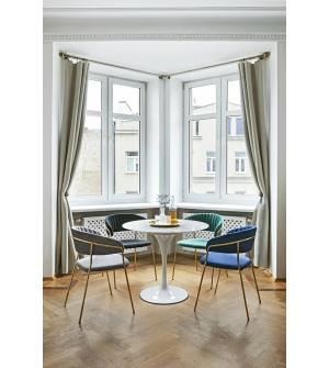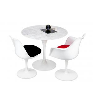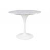 Stół Tulip Marble o średnicy 90 cm. Okrągły blat został z wykonany z włoskiego marmuru Bianco Carrara w jasnym kolorze. Noga wykonana z metalu lakierowanego proszkowo na kolor biały połysk. Dopełnieniem stołu, są fotele i krzesła z kolekcji Tulip. Całość tworzy elegancki i ekskluzywny zestaw. Stół dostępny w innych średnicach oraz z blatem owalnym....