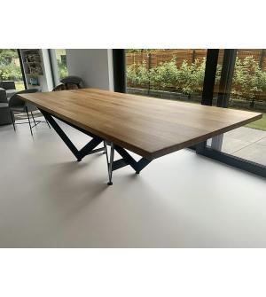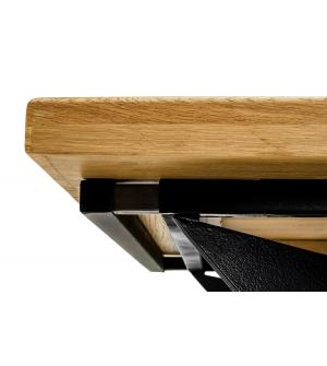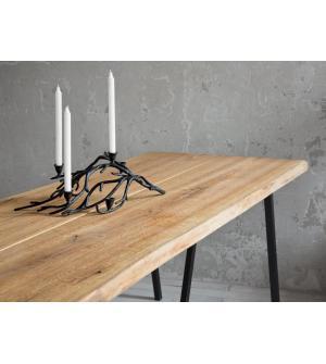 Stół rozkładany Axel 260-340 cm Starannie wykonany Blat z naturalnego drewna dębowego o grubości 5 cm. Dodatkowo został zabezpieczony lakierem matowym. Geometryczna podstawa zapewniająca stabilność i podkreślająca charakter stołu, została zrobiona z metalu w kolorze czarnym, matowym. Dzięki dodatkowym elementom stół może mieć trzy długości, 260 cm >...