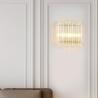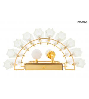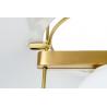 Lampa ścienna PALACE złota Niezwykle elegancka oprawa, której głównym elementem są kryształowe klosze. Każdy z nich jest stylowo wykończony i zamontowany na metalowym stelażu w kolorze złotym, który przebija przez szkło, tworząc dekoracyjny efekt.Światło: 2 x E14 max 40 W (brak w zestawie) Oprawa: wys. 25 cm / szer. 28 cm / gł.15 cm Element ozdobny:...