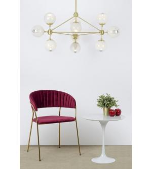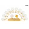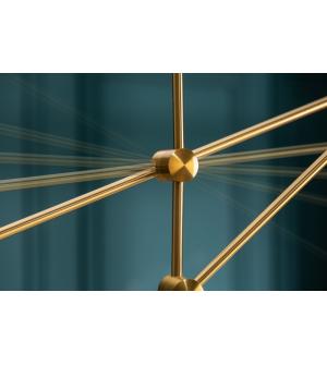 LUNETTE to elegancka lampa wisząca. Lampę tworzy 13 punktów świetlnych wykonanych z metalu i wykończonych złotym kolorem. Punkty zostały starannie połączone konstrukcją w kolorze złotym. Całość tworzy elegancką i designerską kompozycję. Lunette będzie doskonałym oświetleniem do wnętrz nowoczesnych oraz urządzonych w stylu klasycznym.Światło: 13 x E14...