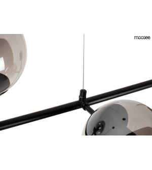 MOOSEE lampa wisząca PALMIER czarna. Konstrukcja oprawy została wykonana z metalu w kolorze czarnym matowym. Klosze są rozmieszczone po przeciwnych stronach stelaża, co tworzy złudzenie lustrzanego odbicia. Dymiony efekt szklanych kloszy potęguje wrażenia estetyczne. Prosta, a zarazem niezwykle dekoracyjna lampa stonuje ekstrawaganckie wnętrza i doskonale...