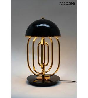 MOOSE lampa stołowa BOTTEGA. Nowoczesna lampa utrzymana w stylu glamour. Została wykonana ze stali w kolorze złotym, a źródło światła skrywane jest pod czarnym kloszem. Bottega doskonale sprawdzi się jako lampka nocna i dekoracja wnętrza.Światło: 2 x G9 (brak w zestawie) Oprawa: wys. 45 cm / szer. 25 cm / gł. 25 cm Klosz: wys. 15 cm / śr. 25 cm...