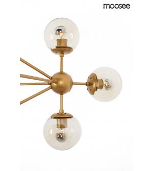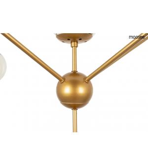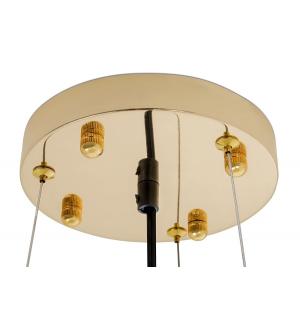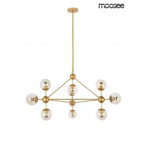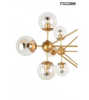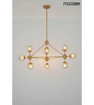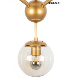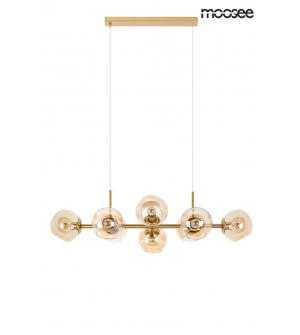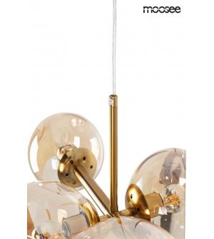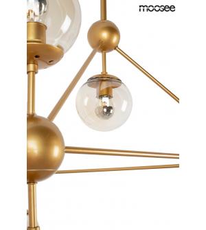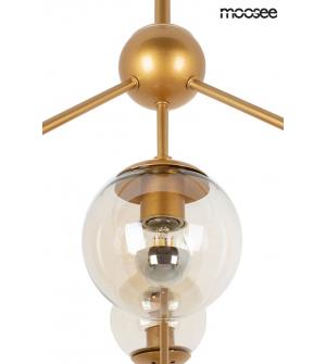MOOSEE lampa wisząca ASTRIFERO 10. Konstrukcja lampy wykonana została z metalu w kolorze złotym. Całość dopełnia 10 okrągłych, szklanych kloszy o bursztynowym kolorze. Do regulacji wysokości oprawy służą 3 metalowe, wkręcane pręty o długościach 2 x 50 cm oraz 1 x 20 cm.Światło: 10 x E27 max 40 W (brak w zestawie) Oprawa: wys. 180 cm / szer. 105 cm / gł....