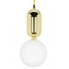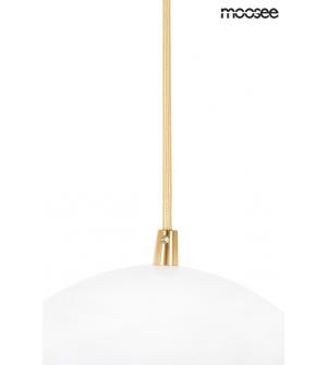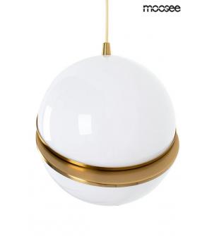 MOOSEE lampa wisząca GLOBE 20 złota Wykonana została z połączenia metalu w kolorze mosiądzu i kulistego klosza wykonanego z mlecznego akrylu. Klosz z dwóch półkul wykończonych szczotkowanym metalem skrywa źródło światła. Całość została zawieszona na czarnym przewodzie w tekstylnym oplocie.Światło: E27 max. 60 W (brak w zestawie) Oprawa: wys. 220 cm /...