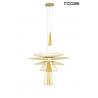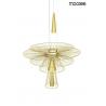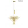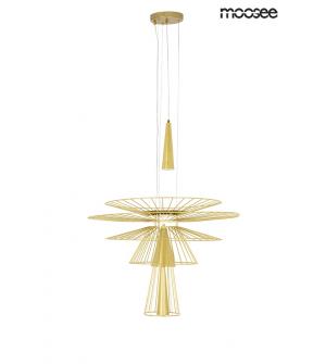 MOOSEE lampa wisząca SESTO złota. Eleganckie i unikatowe wzornictwo idealnie wpisuje się w styl glamour. Kompozycja metalowych drutów ułożona kaskadowo z zastosowaniem dwóch źródeł światła skierowanych w dół. Oświetlenie górnego klosza odbija się od płaskiego okręgu w środku oprawy, który rozprasza strumień światła. Nowoczesny i stylowy wygląd lampy...