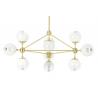 Lampa Planetario 10 Gold. Konstrukcja lampy wykonana została w całości z mosiądzu. Całość dopełnia 10 okrągłych kloszy, wykonanych z oszronionego szkła. Dzięki temu światło jest ciepłe i przyjemne. Lampa doskonale sprawdzi się w salonie lub jadalni.Światło: 10 x E27 max 40 W (brak w zestawie) Oprawa: wys. 143 cm / szer. 96 cm / gł. 96 cm Klosz: śr. 15...