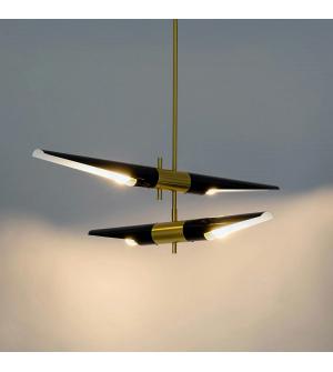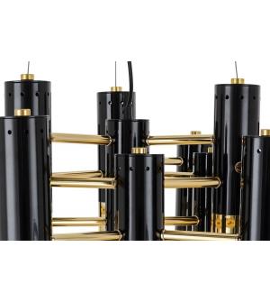 Lampa wisząca Apollo 2 czarna. Klasyczne połączenie czerni i szczotkowanego złota. Czarne, cylindryczne klosze zostały umieszczone na sztywnej konstrukcji w kolorze złoty. Każdy z kloszy można obracać w poziomie, pozwala to na wiele konfiguracji i ułatwia doświetlenie pomieszczenia. Charakter całej konstrukcji podkreśla, szczotkowane złoto.. Lampy z...