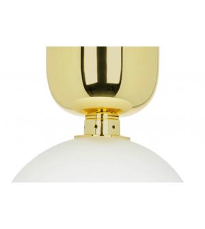 Lampa wiszącą BOY M złota. Korpus wykonany został z połączenia szkła i metalu w złotym, błyszczącym kolorze. Źródło światła zostało ukryte pod szklanym, matowym kloszem. Który dodatkowo rozprasza światło, oferując przyjemną i ciepłą barwę. Prosta forma i staranne wykonanie sprawiają że, lampy z kolekcji BOY doskonale odnajdą się we wnętrzach mieszkalnych...
