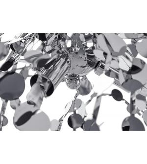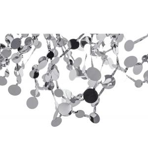 Lampa wisząca Monete chromowana. Wyjątkowo ciekawa lampa która przykuwa uwagę i pobudza kreatywność. Konstrukcja lampy wykonana została z chromowanego metalu. Klosz przypominający swoim wyglądem, garści monet podrzuconych do góry. Został zawieszony na transparentnym przewodzie i podsufitce w kolorze lampy. Lampy z kolekcji Monete będą świetnym dodatkiem...
