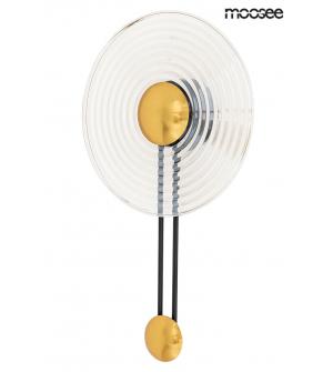 MOOSEE lampa ścienna DING. Oprawa kształtem przypomina zegar ścienny z wahadłem, która wprowadza w nostalgiczny powrót do przeszłości. Szklany klosz w hipnotyzujący sposób rozprasza światło, a okrągłe metalowe elementy stały się jego dekoracją. Ding świetnie odnajdzie się w ponadczasowych aranżacjach w stylu retro.Światło: LED SMD 7,5 W / 600 lm / 3000...