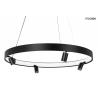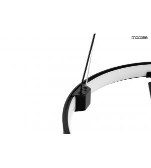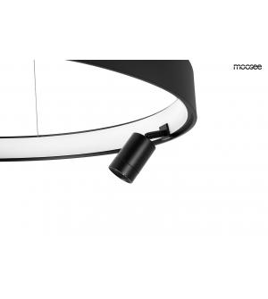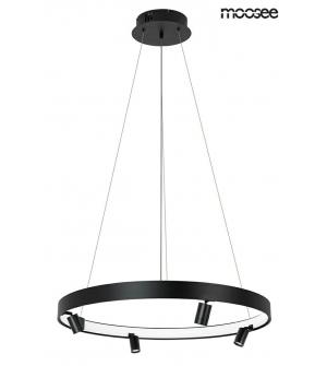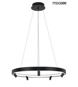 MOOSEE lampa wisząca CIRCLE SPOT 74 BLACK. Wykonana została ze stali nierdzewnej w kolorze czarnym. Okrągły klosz pod akrylową osłoną skrywa ledowe źródło światła. Oprawa jest wzbogacona czterema dodatkowymi punktami świetlnymi. Całość zawieszona na podsufitce w kolorze czarnym, przewodzie i stalowych linkach.Światło: LED SMD 62,5 W / 5000 lm / 3000 K...