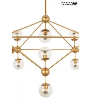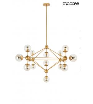 MOOSEE lampa wisząca ASTRIFERO 15. Konstrukcja lampy wykonana została z metalu w kolorze złotym. Całość dopełnia 15 okrągłych, szklanych kloszy o bursztynowym kolorze. Do regulacji wysokości oprawy służą 3 metalowe, wkręcane pręty o długościach 2 x 50 cm oraz 1 x 20 cm.Światło: 10 x E27 max. 40 W (brak w zestawie) Oprawa: wys. 180 cm / szer. 105 cm /...