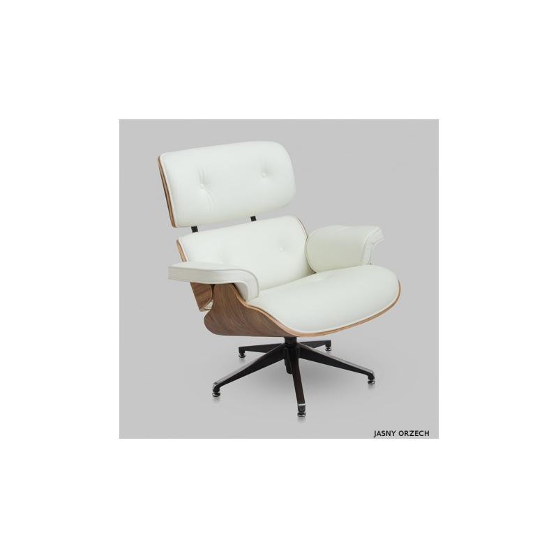 FOTEL TOKYO BIAŁA SKÓRA/JASNY ORZECH jest niezwykle oryginalny, prezentuje nowoczesną odsłonę i przyciąga uwagę swą niezwykłą i urzekającą stylistyką. Jest to inspirowany model projektu Lounge Chair Eames. Stać się on może wizytówką każdego aranżowanego, nowoczesnego wnętrza i to zarówno domowego salonu jak i przestrzeni biurowej. Fotel został ubrany w nowoczesną i ekskluzywną, a przy tym fantazyjną skórę włoską.