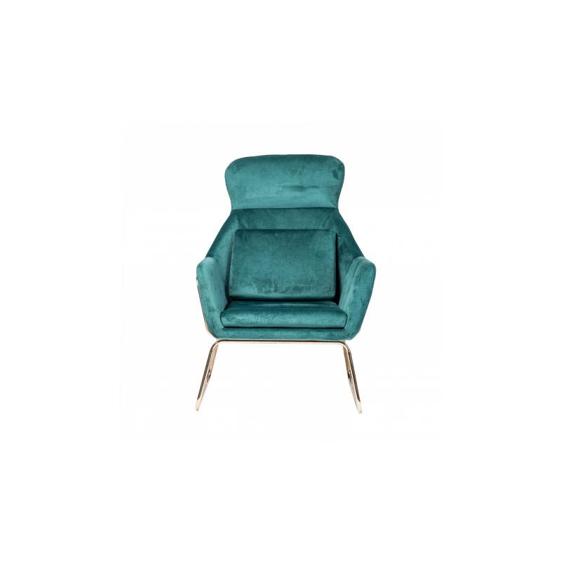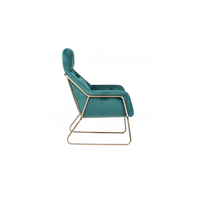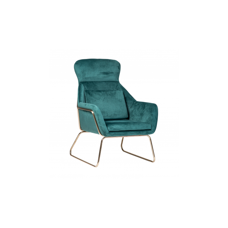 Fotel FOTEL FARO GOLD ZIELONY/ ZŁOTA RAMA - ten na zdjęciach jest z wysokim oparciem prezentuje prawdziwe skandynawskie wzornictwo. Opływowe kształty fotela oraz starannie wyprofilowane oparcia i podłokietniki kuszą najwyższym poziomem komfortu. Połączenie modnego koloru i oryginalnej formy to prawdziwy kunszt estetyki. Cudowny kolor butelkowej zieleni zamknięty w welurowej tkaninie odznacza się niezwykłą miękkościom.