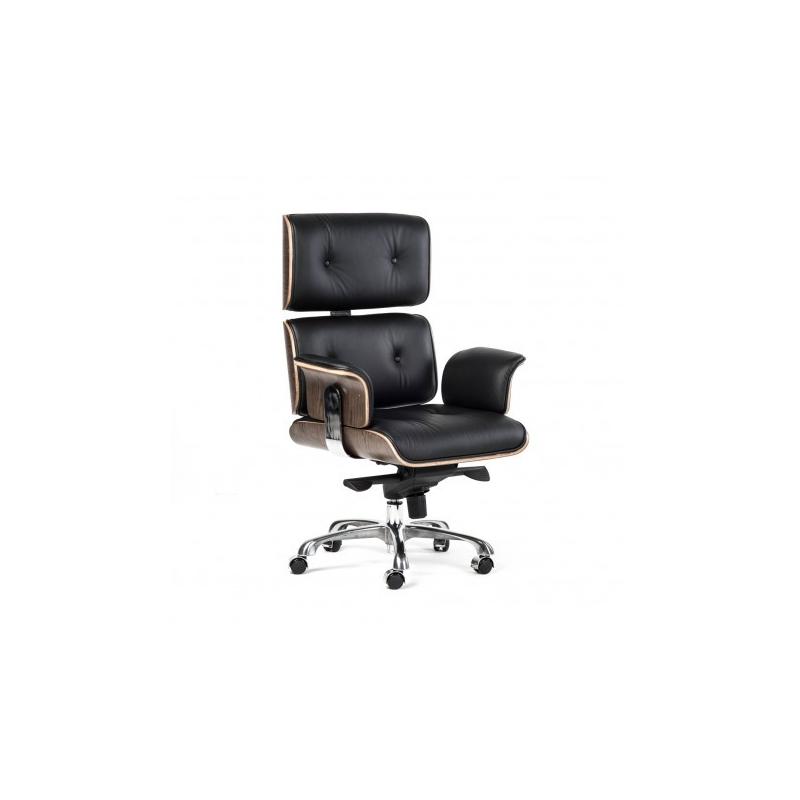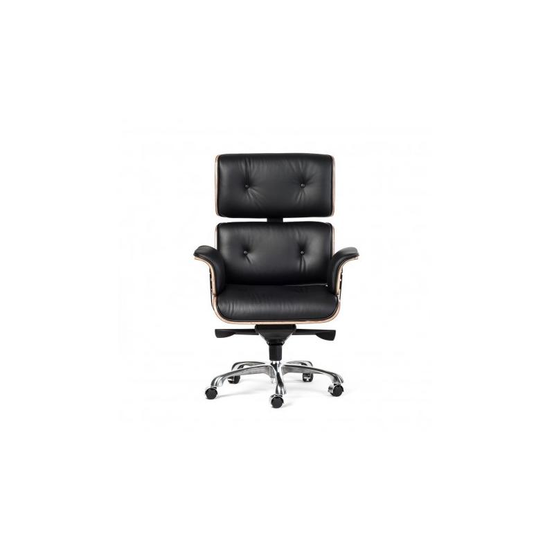 FOTEL BIUROWY TOKYO CZARNY jest niezwykle oryginalny, prezentuje nowoczesną odsłonę i przyciąga uwagę swą niezwykłą i urzekającą stylistyką. Jest to inspirowany model projektu Lounge Chair Eames. Stać się on może wizytówką każdego aranżowanego, nowoczesnego wnętrza i to zarówno domowego salonu jak i przestrzeni biurowej. Fotel został ubrany w nowoczesną i ekskluzywną, a przy tym fantazyjną skórę włoską. Fotel posiada mechanizm regulacji wysokości, blokady oparcia, manualną regulację siły oporu oparcia oraz możliwość swobodnego kołysania się.