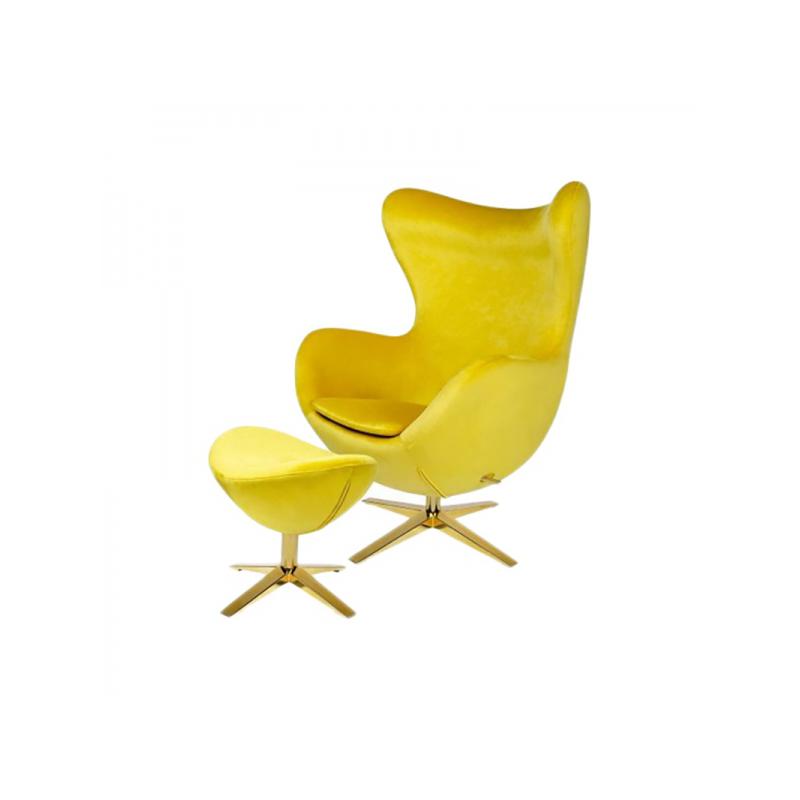 IBIZA GOLD VELVET Z PODNÓŻKIEM jest niezwykle oryginalny, prezentuje nowoczesną odsłonę i przyciąga uwagę swą niezwykłą i urzekającą stylistyką oraz wyrazistymi kolorami. Stać się on może wizytówką każdego aranżowanego, nowoczesnego wnętrza i to zarówno domowego salonu jak i przestrzeni biurowej. Fotel wraz z podnóżkiem zostały ubrany w nowoczesny WELUR. Fotel posiada mechanizm obrotowy z możliwością bujania, a podnóżek sprawia wyższy poziom w użytkowaniu. Poza tym fotel można blokować w pozycji odchylonej lub pionowej. Fotel inspirowany jest projektem "Egg" Arne Jacobsena dla hotelu Radisson SAS w Kopenhadze.
