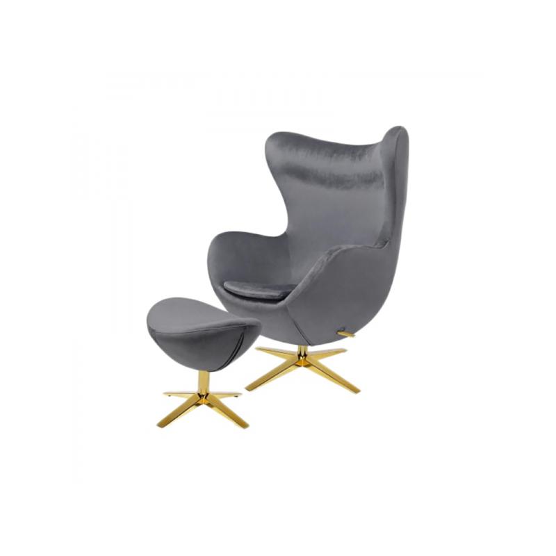 IBIZA GOLD VELVET Z PODNÓŻKIEM jest niezwykle oryginalny, prezentuje nowoczesną odsłonę i przyciąga uwagę swą niezwykłą i urzekającą stylistyką oraz wyrazistymi kolorami. Stać się on może wizytówką każdego aranżowanego, nowoczesnego wnętrza i to zarówno domowego salonu jak i przestrzeni biurowej. Fotel wraz z podnóżkiem zostały ubrany w nowoczesny WELUR. Fotel posiada mechanizm obrotowy z możliwością bujania, a podnóżek sprawia wyższy poziom w użytkowaniu. Poza tym fotel można blokować w pozycji odchylonej lub pionowej. Fotel inspirowany jest projektem "Egg" Arne Jacobsena dla hotelu Radisson SAS w Kopenhadze.