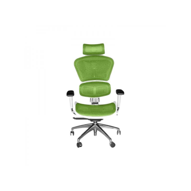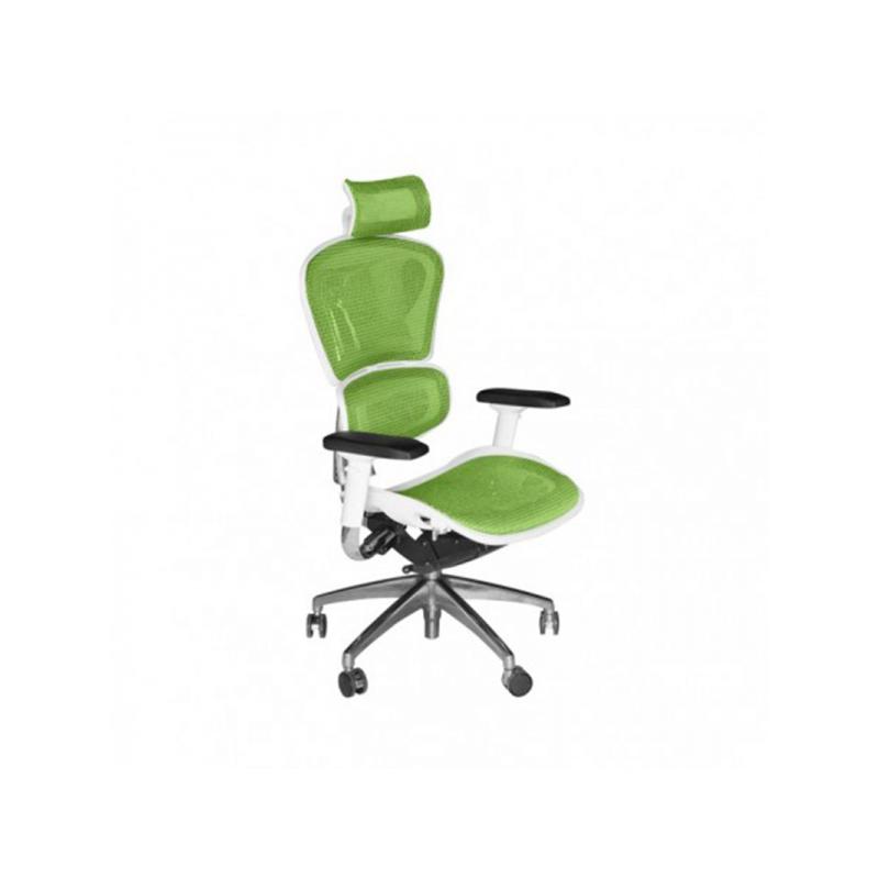 FOTEL BIUROWY KORSYKA zielony - fotel ten jest z wysokim oparciem i prezentuje prawdziwy komfort przez duże K. Ergonomiczne kształty fotela oraz starannie wyprofilowane oparcia i podłokietniki kuszą najwyższym poziomem komfortu. Siedzisko fotela Korsyka wykonane zostało z siatki Mesh. Jest ono bardzo wytrzymałe i odpowiednio wyprofilowane - tak, aby zadbać o nasze plecy. Dodatkową funkcją jest regulacja wysokości oparcia i zagłówka. Oparcie można także wychylić i zablokować w dowolnej pozycji, natomiast podłokietniki można regulować w poziomie i pionie. Jest to fotel biurowy, ale niezwykle elegancki, kuszący najwyższym poziomem komfortu. Stabilne i wytrzymałe siedzisko z możliwością regulacji do wagi użytkownika.