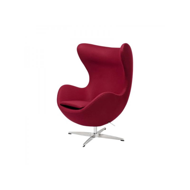 FOTEL IBIZA CHROM bordowy jest niezwykle oryginalny, prezentuje nowoczesną odsłonę i przyciąga uwagę swą niezwykłą i urzekającą stylistyką oraz wyrazistymi kolorami. Stać się on może wizytówką każdego aranżowanego, nowoczesnego wnętrza i to zarówno domowego salonu jak i przestrzeni biurowej. Fotel został ubrany w nowoczesną wełnę. Fotel posiada mechanizm obrotowy z możliwością bujania. Poza tym fotel można blokować w pozycji odchylonej lub pionowej. Fotel inspirowany jest projektem "Egg" Arne Jacobsena dla hotelu Radisson SAS w Kopenhadze.