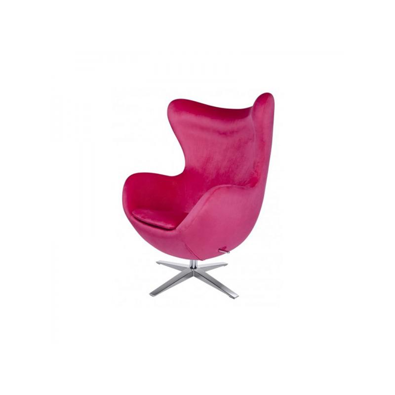 FOTEL IBIZA IBIZA VELVET różowy jest niezwykle oryginalny, prezentuje nowoczesną odsłonę i przyciąga uwagę swą niezwykłą i urzekającą stylistyką oraz wyrazistymi kolorami. Stać się on może wizytówką każdego aranżowanego, nowoczesnego wnętrza i to zarówno domowego salonu jak i przestrzeni biurowej. Fotel zostały ubrany w nowoczesny WELUR. Fotel posiada mechanizm obrotowy z możliwością bujania, a podnóżek sprawia wyższy poziom w użytkowaniu. Poza tym fotel można blokować w pozycji odchylonej lub pionowej. Fotel inspirowany jest projektem "Egg" Arne Jacobsena dla hotelu Radisson SAS w Kopenhadze.