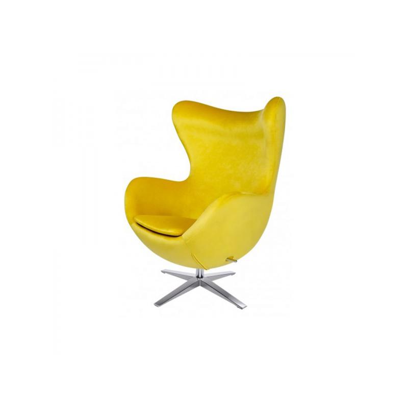 FOTEL IBIZA IBIZA VELVET żółty jest niezwykle oryginalny, prezentuje nowoczesną odsłonę i przyciąga uwagę swą niezwykłą i urzekającą stylistyką oraz wyrazistymi kolorami. Stać się on może wizytówką każdego aranżowanego, nowoczesnego wnętrza i to zarówno domowego salonu jak i przestrzeni biurowej. Fotel zostały ubrany w nowoczesny WELUR. Fotel posiada mechanizm obrotowy z możliwością bujania, a podnóżek sprawia wyższy poziom w użytkowaniu. Poza tym fotel można blokować w pozycji odchylonej lub pionowej. Fotel inspirowany jest projektem "Egg" Arne Jacobsena dla hotelu Radisson SAS w Kopenhadze.