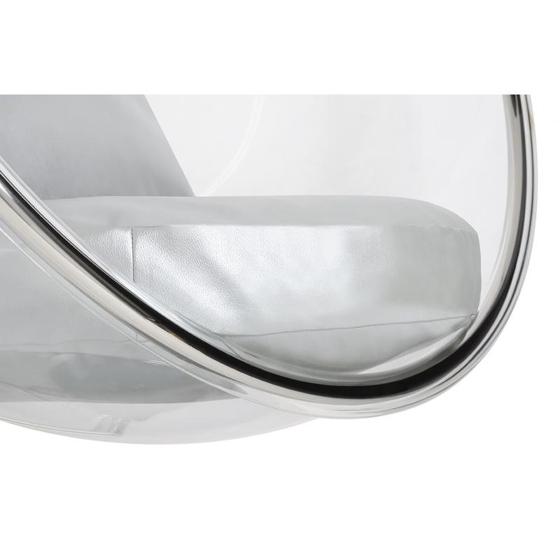 Fotel wiszący BUBBLE poduszka srebrna - korpus akryl, poduszka ekoskóra